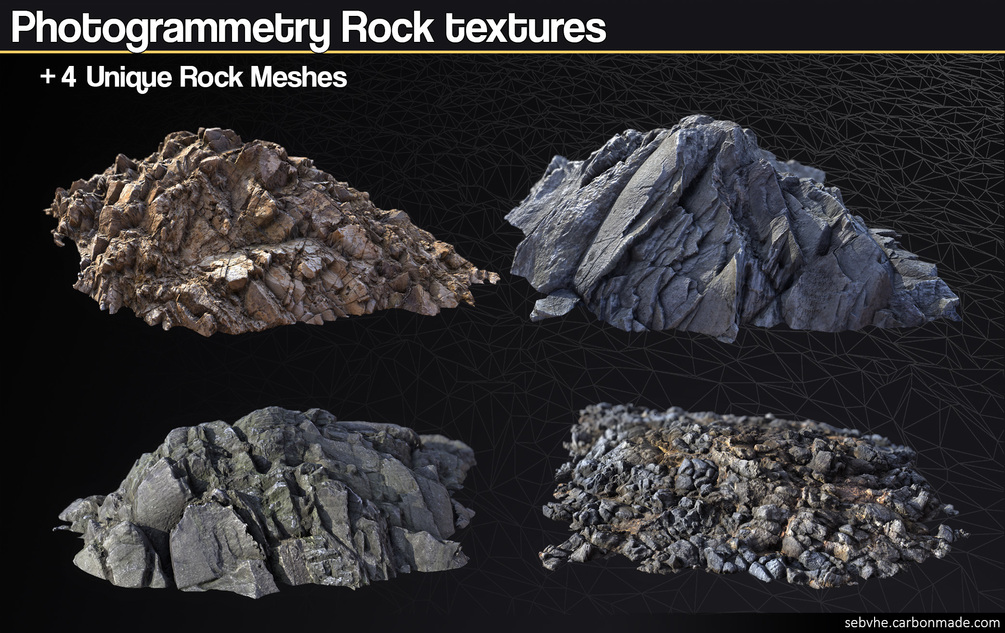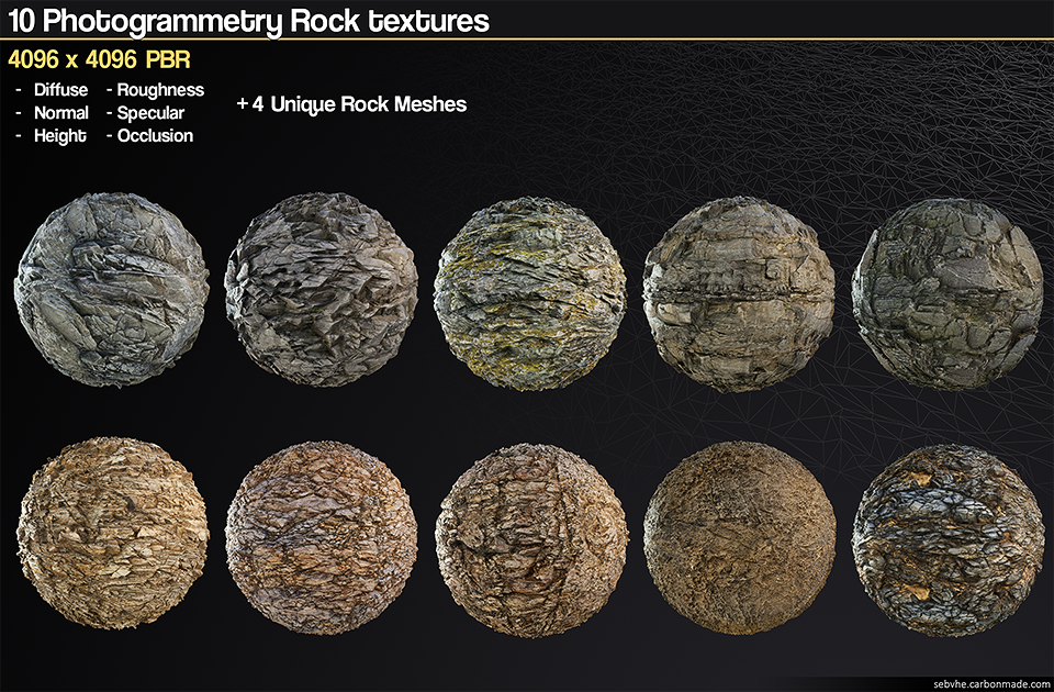 10 x 4096² photogrammetric, Fully PBR rock textures to use with realtime engines such as Unreal Engine 4.